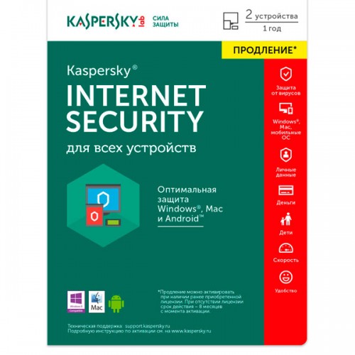 Kaspersky Internet Security продление на 1 год на 2 компьютера